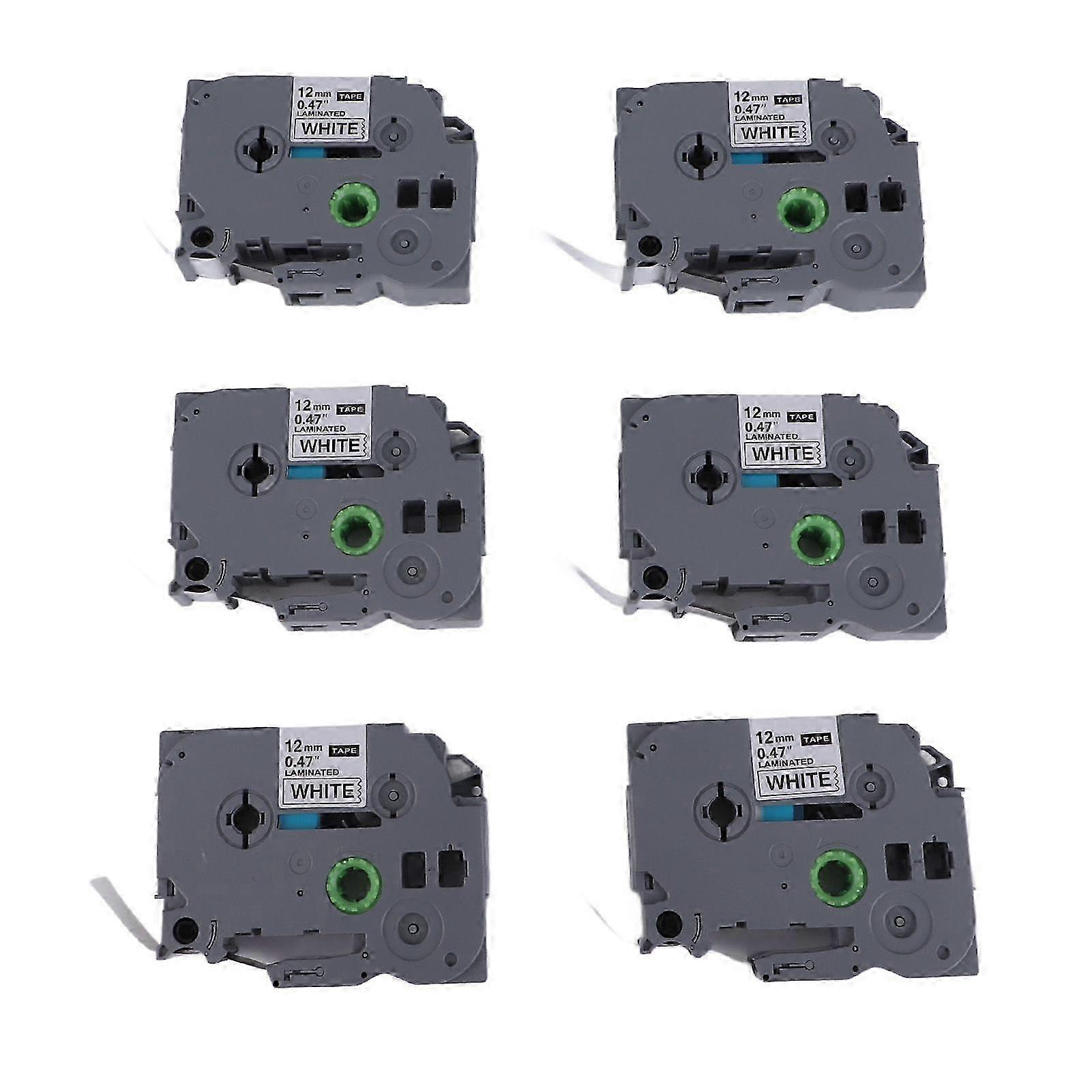Label Maker Tape 12mm Width 8M Length Black On White Waterproof Covering Strong Adhesive Label Tape for TZC231 White Box of 6