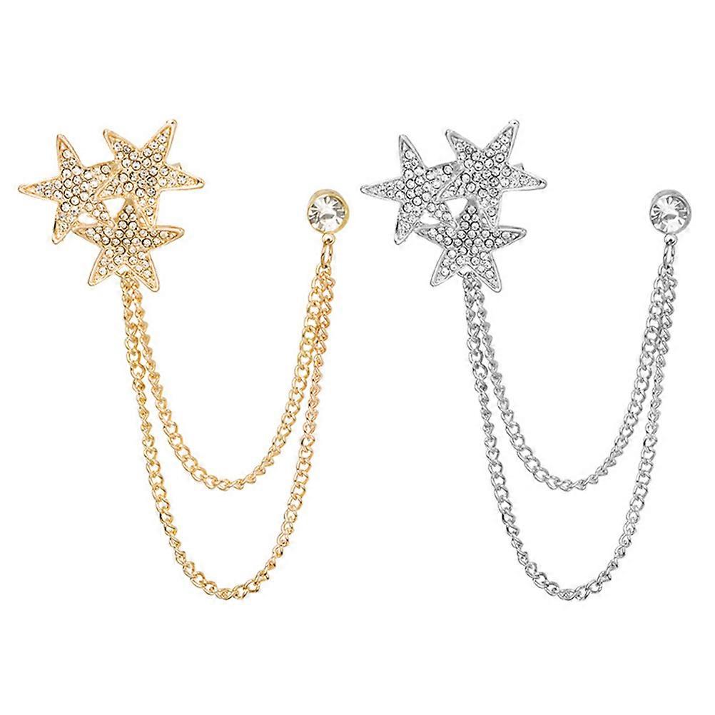 Lapel Chain Star Chain Brooch Chain Lapel Pin Badge Accessories Fashion Style 2Pcs