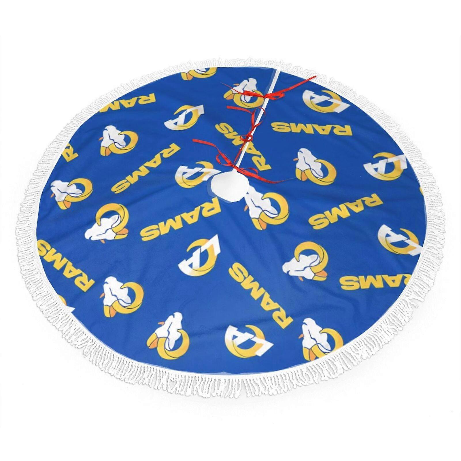 Rams Christmas Fringe Plush Tree Skirt - Football Team Colors, Bright Decor, Easy Install, Great Gift for Sports Fans (30" 36" 48")