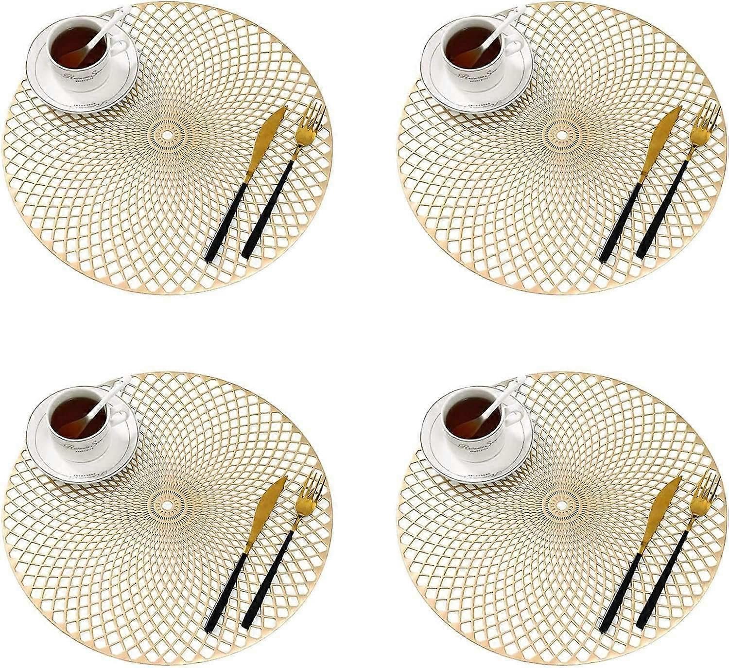 Placemats Set of 4 Coasters Gold Round Placemats Placemat Table Mat for Table Dining Kitchen (Gold S