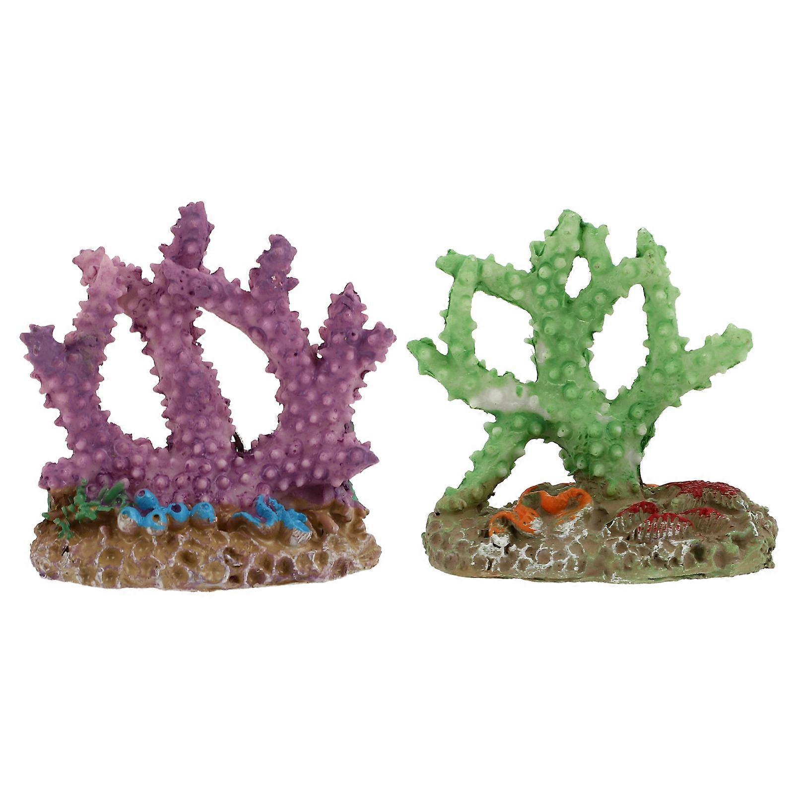 Landscape Aquarium Ornament Artificial Coral Plant Fish Tank Accessory Green 2Pcs