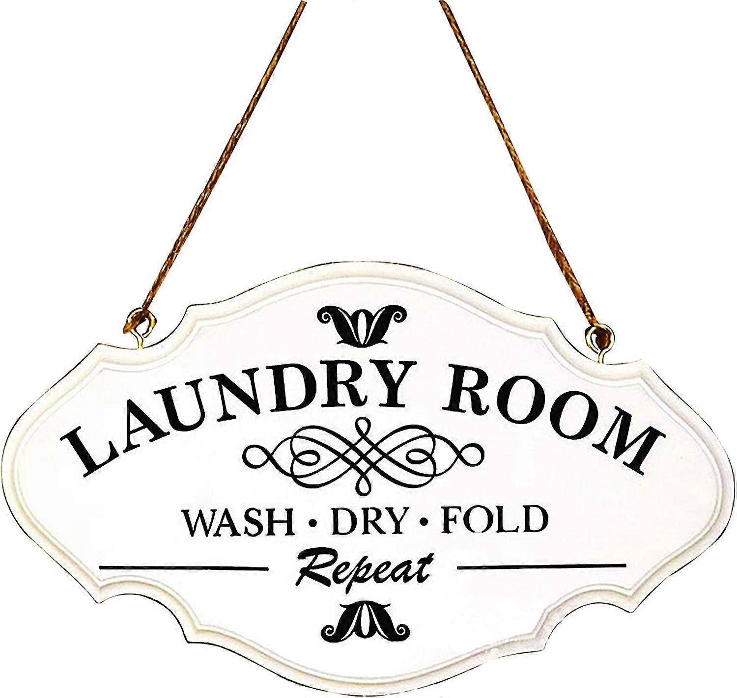 Laundry Room Wash Dry Fold Rustic Wood Sign Vintage Look Home Bathroom Wash Room Hanging Sign Plaque 6x11Inch (White)
