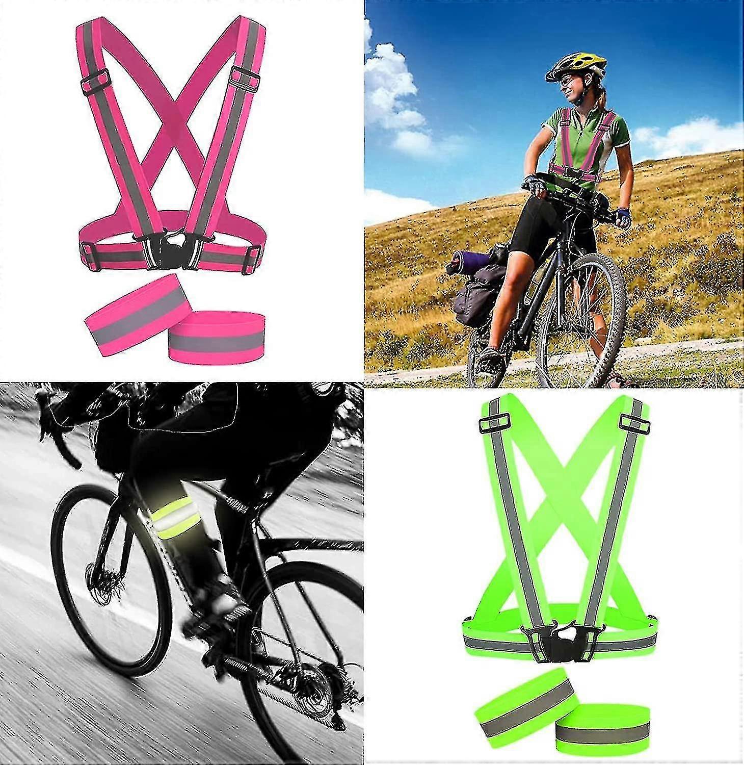 2 Pack Running Reflective Vest Gear 4 Pcs Reflective Bands High Visibility Adjustable Safety Vest For Night Cycling,running,hiking, Jogging,dog Walkin