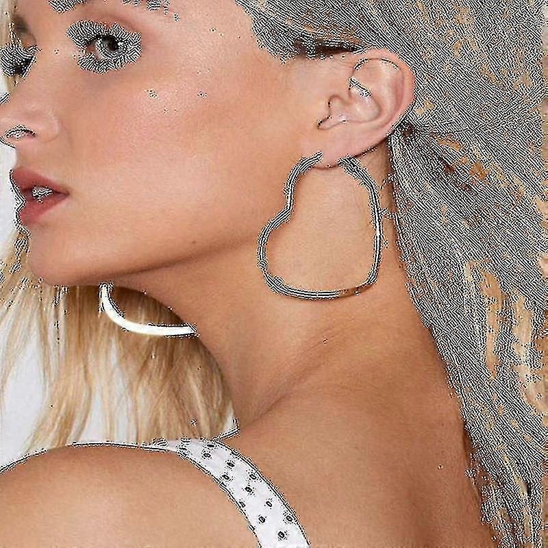 Large Heart Hoop Earrings Womens Charm Big Earrings Stainless Steel Si