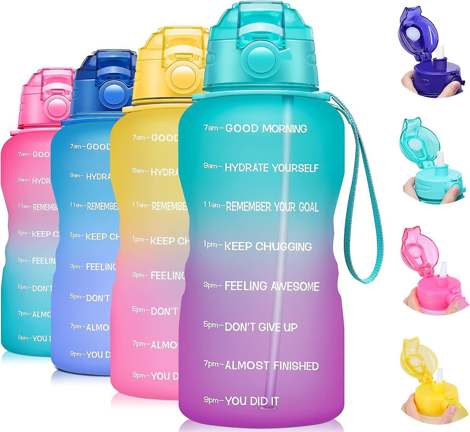 Large Half Gallon / 1 Gallon Water Bottle with Time Maker & Removable Straw, Leakproof BPA Free Moti