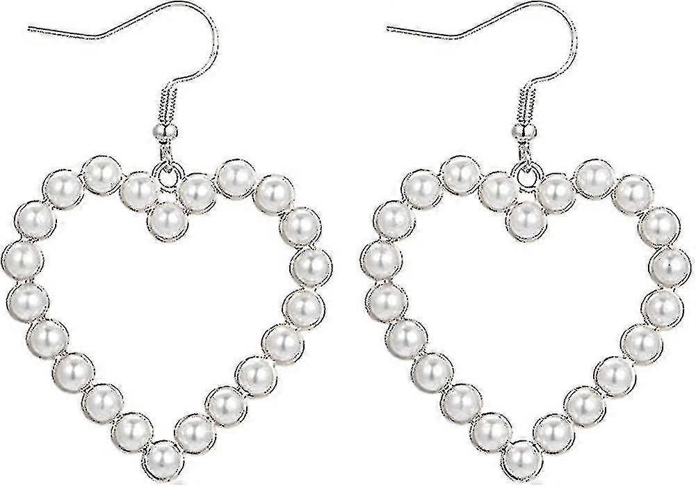 Large Hoop Dangle Earring Black White Pearl Earring With Stainless Steel Pin Big Circle Loop Earrings For Women Girls Jewelry L2:silver Heart Hook - F