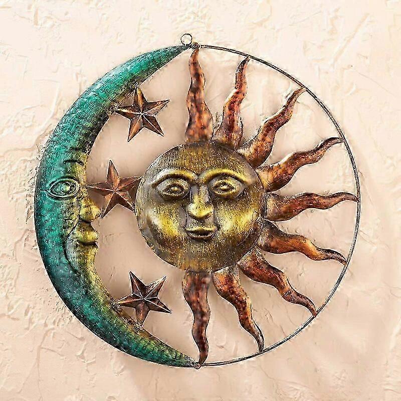 Large Metal Sun Metal Wall Art Sun and Moon Metal Wall Decor Sun and Moon Metal Wall Art Outdoor for Home Garden Patio Porch Fence Decoration Green A(