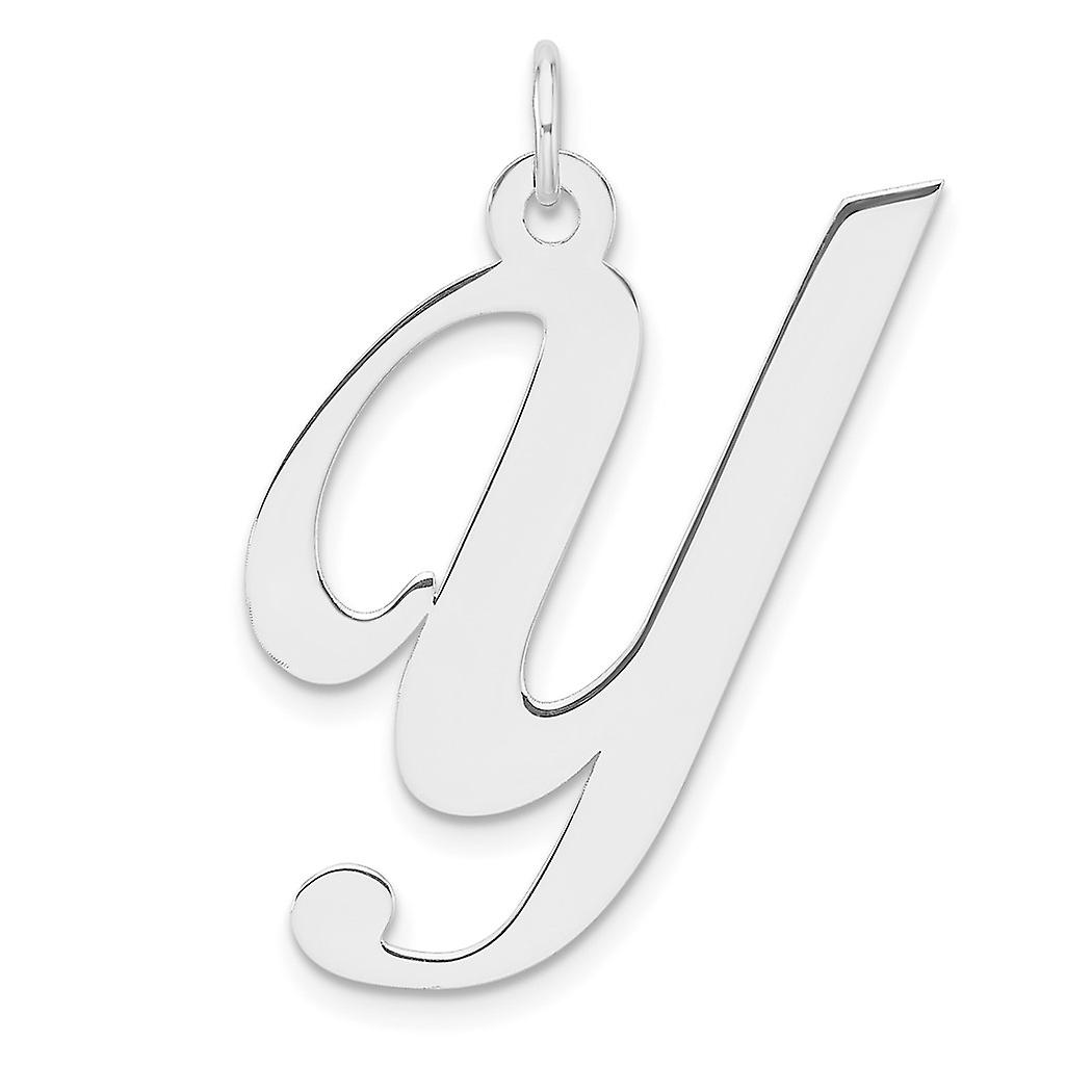 Large 925 Sterling Silver Rhodium Plated Fancy Script Letter Y Initial Charm 38.1x17.01mm Wide 0.43mm Thick Pendant Neck