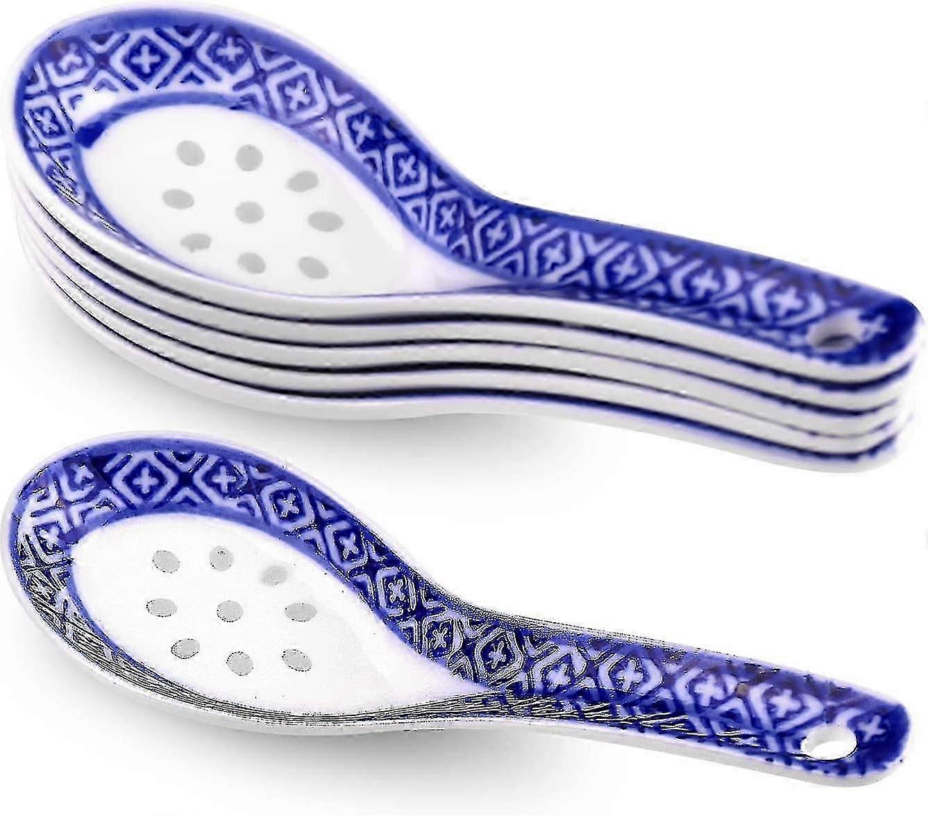 6pcs Chinese Ceramic Soup Spoons for Ramen Pho Wonton Noodles