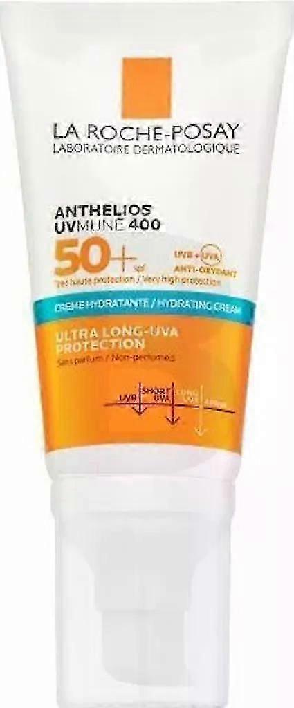 Protect and hydrate your skin with La Roche-Posay Anthelios UVmune 400 SPF50+ Hydrating Cream: - Provides high SPF 50+ protection against UVA and UVB rays. - Its moisturizing formula nourishes and moisturizes the skin. - Its non-greasy texture absorbs quickly and is comfortable to wear every day. For daily use and sun exposure. Shake before use. Apply sunscreen just before sun exposure. Reapply frequently and generously to maintain protection, especially after perspiring or toweling. AQUA / WATER DIISOPROPYL SEBACATE ALCOHOL DENAT. ETHYLHEXYL SALICYLATE ETHYLHEXYL TRIAZONE BIS ETHYLHEXYLOXYPHENOL METHOXYPHENYL TRIAZINE DIISOPROPYL ADIPATE PEG 8 DIPROPYLENE GLYCOL C12 22 ALKYL ACRYLATE/HYDROXYETHYL ACRYLATE COPOLYMER GLYCERIN DROMETRIZOL TRISILOXANE ALUMINUM STARCH OCTENYLSUCCINATE BUTYLMETHOXYDIBENZOYLMETHANE METHOXYPROPYLAMINOCYCLOHEXENYLIDENETHOXYETHYLCYANOACETATE SILICIC ACID TOCOPHEROL DIETHYLAMINO HYDROXYBENZOYL HEXYL BENZOATE ACRYLATE COPOLYMER ACRYLATE/C10 30 ALKYL ACRYLATE CROSSPOLYMER CAPRYLYL GLYCOL HYDROXYACETOPHENONE PENTAERYTHRITYL TETRA DI T BUTYL HYDROXYHYDROCINNAMATE SODIUM POLYACRYLATE TEREPHTHALYLIDENE DICAMPHERESULFONIC ACID TRIETHANOLAMINE TRISODIUM ETHYLENEDIAMINE DISUCCINATE Very high facial sun protection in a moisturizing formula. SMALL BENEFITS: - Very high protection - For sensitive skin - Moisturizing, extremely comfortable formula - No white marks - Highly resistant to water, sweat, and sand - Non-greasy texture, fragrance-free - Non-sticky - Hypoallergenic - For all skin types Active ingredients: - MEXORYL 400: a technologically patented UV filter, offers very high broad-spectrum UVA/UVB protection and helps protect against deep cellular damage. - GLYCERINE: a moisturizing agent that strengthens the skin barrier. TESTED PRODUCT DIRECTIONS: Shake before use. Apply cream just before sun exposure. Reapply frequently and generously to maintain protection, especially after perspiring or wiping the skin with a towel. Overexposure to the sun is dangerous, even if you use sunscreen, as it does not provide 100% protection. > - high-quality medical sunscreen - for UV protection for the skin - cream for application to the skin - dermocosmetics from the pharmacy - Manufacturer: Manufacturer: L'Oreal Deutschland GmbH Division La Roche-Posay, Germany (original product from Germany) - PZN: 17636601 Purpose: Face & Body Volume (ml): 50 ml Substance: Cream Skin care effect: Protection Suitable for skin types: Universal cover Suitable for: Unisex Dispenser type: Bottle Waterproof: Yes Body lotion: Yes Content body lotion: 50 ml Ingredients: 884817 1AQUA/WATERHOMOSALATESILICAOCTOCRYLENEETHHEXYL SALICYLATEBUTYL METHOXYDIBENZOYLMETHANEETHYLHEXYL TRIAZONEBIS-ETHYLHEXYLOXYPHENOL METHOXYPHENYL TRIAZINEDROMETRIZOLE TRISILOXANEALUMINIUM STARCH OCTENYLSUCCINATEGLYCERIN PENTYLENE GLYCOLSTYRENE/ACRYLATES COPOLYMERPOTASIUM CETYL PHOSPHATEDIMETHICONEPERLITEPROPYLENE GLYCOLACRYLATES/C10-30ALKYL ACRYLATE CROSSPOLYMERALUMINUM HYDROXIDEP-ANISIC ACIDCAPRYLYL GLYCOLDISODIUM EDTAILULIN LAURYL CARBAMATEISOPROPYL LAUROYL SARCOSINATEPEG-8 LAURATEPHENOXYETHANOLSCUTELLARIA BAICALENSIS EXTRACT/ SCUTELLARIA BAICALENSIS ROOT EXTRACTSILICA SILYLATESTEARIC ACIDSTEARYL ALCOHOLTEREPHTHALYLIDENE DICAMPHOR SULFONIC ACIDTITANIUM DIOXIDETOCOPHEROLTRIETHANOLAMINEXANTHANE GUMZINC GLUCONATE(CODE. FIL C193837/1) Packaging type: Box Quantity per pack: 1 piece(s) La Roche Posay Anthelios UVmune 400 Cream SPF50 50 ml La Roche-Posay Anthelios UVMUNE 400 Hydrating Cream SPF 50+ 50 ml is an innovative, moisturizing sunscreen that offers very high protection against UVA and UVB radiation, including long-wave UVA radiation up to 400 nm. This specific formula is ideal for dry and sensitive skin as it not only protects it but also keeps it soft and hydrated. ### Properties: - **SPF 50+:** Provides broad-spectrum protection, including long-wave UVA radiation, to effectively protect the skin. - **Thermal Spring Water:** Enriched with La Roche-Posay Thermal Spring Water which soothes and protects sensitive skin. - **Moisturizing texture:** Absorbs quickly and leaves no greasy or white film on the skin. - **Resistant:** Highly resistant to water, sweat, and sand, ideal for active days. - **Tested:** Hypoallergenic and fragrance-free, making it safe for sensitive skin. ### Key benefits: - **High sun protection:** Provides very high and long-lasting protection against UV rays. - **Premature aging:** Protects the skin from premature aging caused by UV rays. - **Intense hydration:** Moisturizes the skin and leaves it comfortable. - **Fast absorption:** Absorbs quickly and is ideal as a makeup base. - **Compact packaging:** Ideal for daily use and easy to carry. ### How to use: 1. **Apply:** Before sun exposure, apply an appropriate amount of cream to clean, dry facial skin. 2. **Repeat:** Repeat application every two hours, especially after bathing, towel drying, or perspiring. 3. **Avoid contact with eyes:** Avoid contact wit