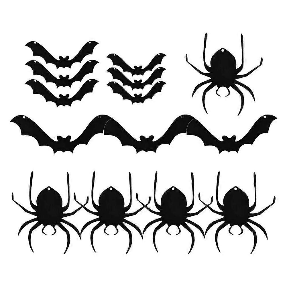 Realistic Halloween Spider And Bat Decor For Home And Party 14 Pieces Black Hanging Decorations