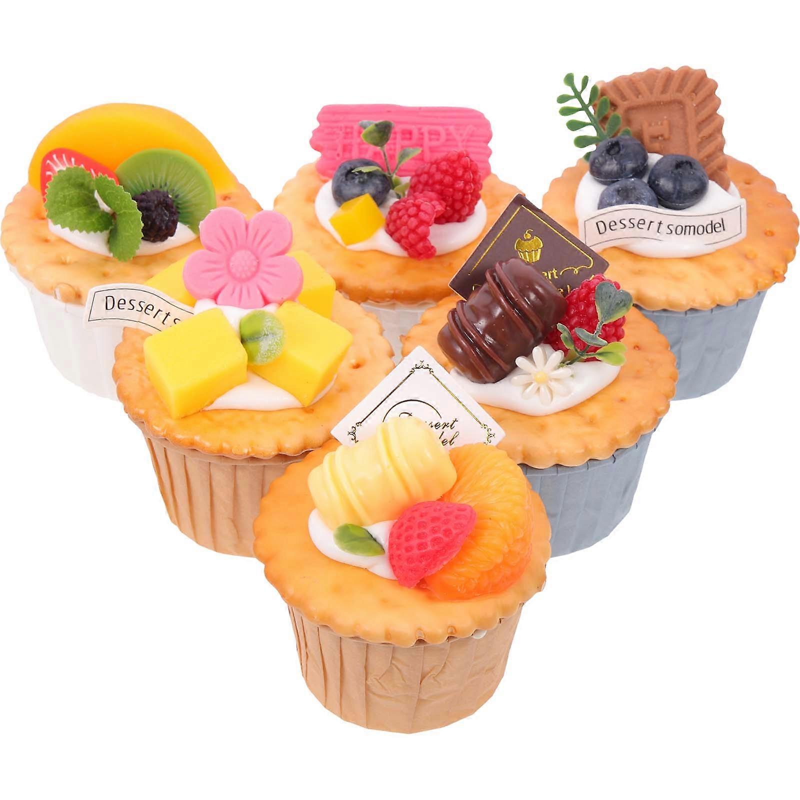 Lifelike Fake Cakes Reliable Cake Models Bakery Decor Office Shop Use Resin Material Photography Prop 6Pcs