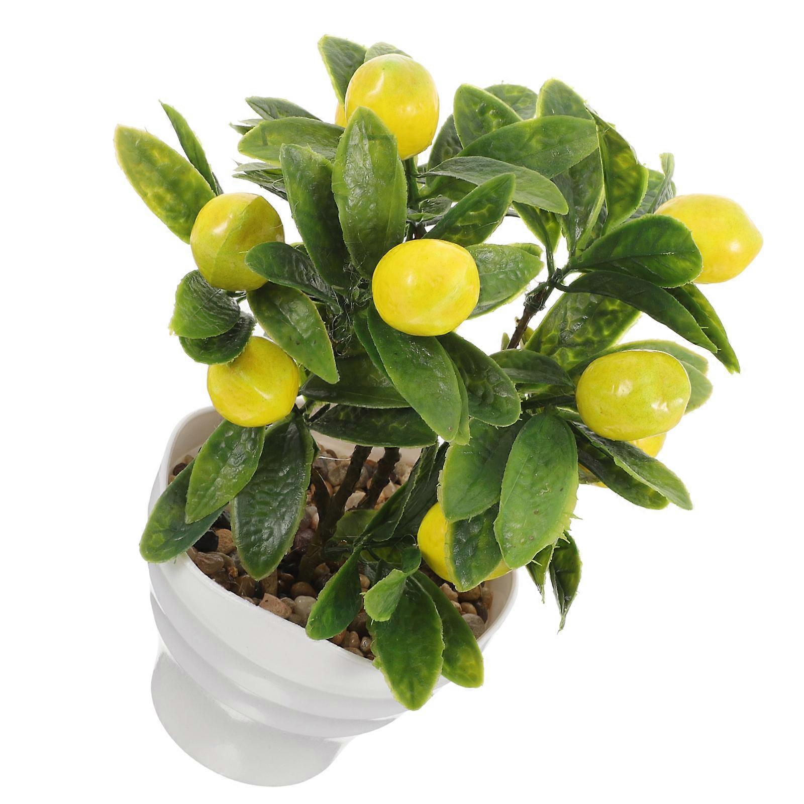 Realistic Fake Lemon Bonsai Tree Potted Plant for Indoor Home Office Decor Desktop Kitchen Living Room Bookshelf Decoration Plastic Pot Included