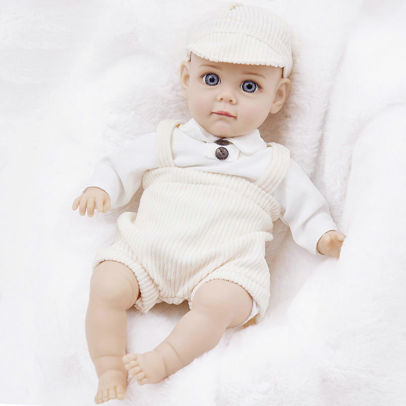Realistic 14inch Vinyls Newborns Baby Boy Doll Realistic Child Toy Soft Doll Vinyls with Stuffed Toy Collectible
