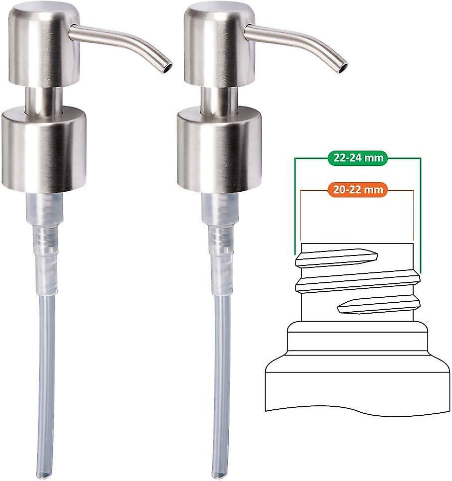 Liquid Soap Dispenser Replacement Pump - Stainless Steel, Brushed Finish Stainless Steel, 2 Pieces -