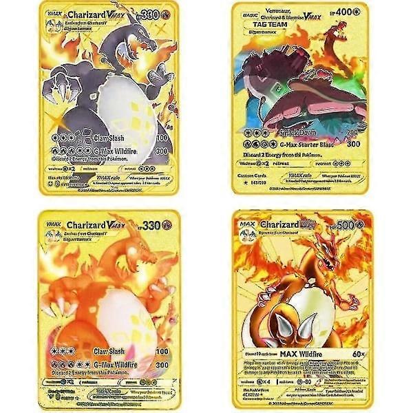 Charizard Vmax Metal Card - 4 Pcs Ultra Rare Card Metal Card V Card/vmax/ex/dx Collectible Card - Gift for Collectors