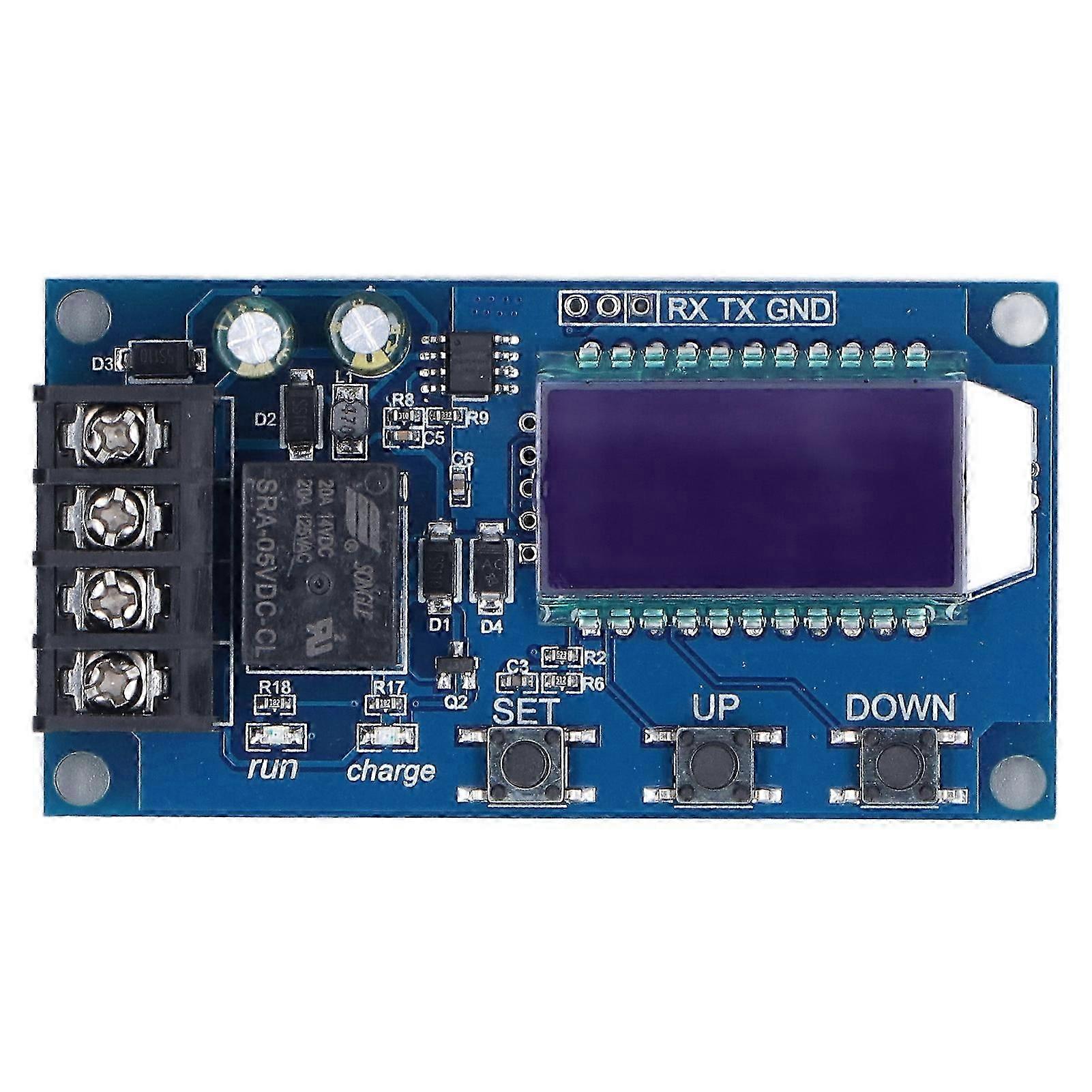 Feature:1. SCOPE OF APPLICATION: This charging control module can be widely suitable for 660V any battery, lithium battery, easy to use2. LCD DISPLAY: The module adopts LCD display, the battery voltage, charging percentage and charging time can be seen at a glance3. MULTIPLE FUNCTIONS: Very powerful, can automatically charge control, can control the charging time, can set and upload the corresponding parameters through the serial port4. BASIC SPECIFICATIONS: The module control voltage is DC660V, control current is 10A, and the control accuracy is 0.1V5. PCB MATERIAL: This overcharge protection switch is made of high quality PCB material, and which output type is direct outputSpecification:Item Type: Lithium Battery Charge Control ModuleMaterial: PCBModel: XY-L10AControl Voltage: DC6-60VControl current 10AControl Accuracy: 0.1VOutput Type: Direct OutputVoltage Error: 0.1VScope Of Application: Various Lithium Batteries1. Function Description1. Automatic Charging Control Function: By setting the upper limit voltage UP and lower limit voltage dn, when the battery voltage lower limit voltage dn, the relay is turned on, and the charger starts to charge the battery, when the battery voltage the upper limit voltage UP, the relay is turned off to complete an automatic charging2. Charging Time Control Function: How to turn on the time control function?After Entering The Parameter Setting, If The Parameter Op Is Not set to 0, the time control function is enabled. The default parameters of OP are: --: --h, and the time control function is not enabled by defaultAfter The Time Control Function Is Turned On (op Is Not 0), when the battery voltage is less than the lower limit voltage dn, the charger starts to charge the battery, and the system starts timing, during the timing period, the battery voltage the upper limit voltage UP, the relay is disconnected, if the battery voltage <upper limit voltage, but the charging time OP time is up, the relay is disconnected, if the OP time is up, the battery voltage is still <lower limit voltage dn, the relay remains on, the charging time control function is automatically turned off, and H: ER flashes to remind the user that the time The parameter setting is unreasonable, press any key to stop flashingNote: Time Format: 00: 59 (00 Represents Hours, 59 Represents Minutes) The Longest Time is 99: 59, which is 100 hours.3. Serial Port Data Upload And Parameter Setting Function: The system supports UART data upload and parameter setting function (TTL level)UART: 115200,8,1On: The relay enable is turned onOff: The relay is enabled to closeStart: Start the data reporting functionStop: Stop the data reporting functionRead: Get system parametersdw10.0: Set the lower limit voltageup20.0: Set the upper limit voltageXX: XX: Set The Charging Time, 00: 00 Turns off the charging time control functionHow to Use:Parameter Settings: a. Press and hold the SET button to enter the parameter setting interface, and the LCD will display SETb. After entering the parameter setting interface, switch the set parameters by short pressing the SET keyc. After selecting the parameter, you can set through the UP DOWN key, support short press, long press (rapid increase or decrease)d. To set other parameters, repeat steps b and ce. After all parameter settings are completed, long press the SET button to exit and saveButton Function Description: In the running interface (main interface)Short press the SET button to display the currently set parametersShort press the UP button to switch to display the charging percentage and charging timeShort press the DOWN button to select on off the relay enable, if the relay enable is off, will display OFF as a reminder, the relay is disconnectedLong Press The Up Button To Set The Status Of The lcd backlight (l p), off: The Backlight Is Always On, On: The backlight will automatically turn off after 5-10 minutes;Long press the SET button to enter the parameter setting.Calculation Of Voltage Percentage: Battery voltage / (upper limit voltage - lower limit voltage).Additional Features: A. Charging Time Recording Function: When the charging time control is not turned on, will record the complete time once. When entering the time display interface, the charging time will flash and display, then exit the time display interface or clear when the follow charging is turned on (the relay is turned on). B. Automatic Parameter Detection: After setting the parameters and exiting, if the lower voltage limit dn the upper limit voltage up, the system will flash and display ERR as a reminderC. Battery Connection Detection: Attached to the battery, if is not connected to the battery, the system will display nbE in the lower line as a reminder.Package List:1 x Battery Charge Control Module