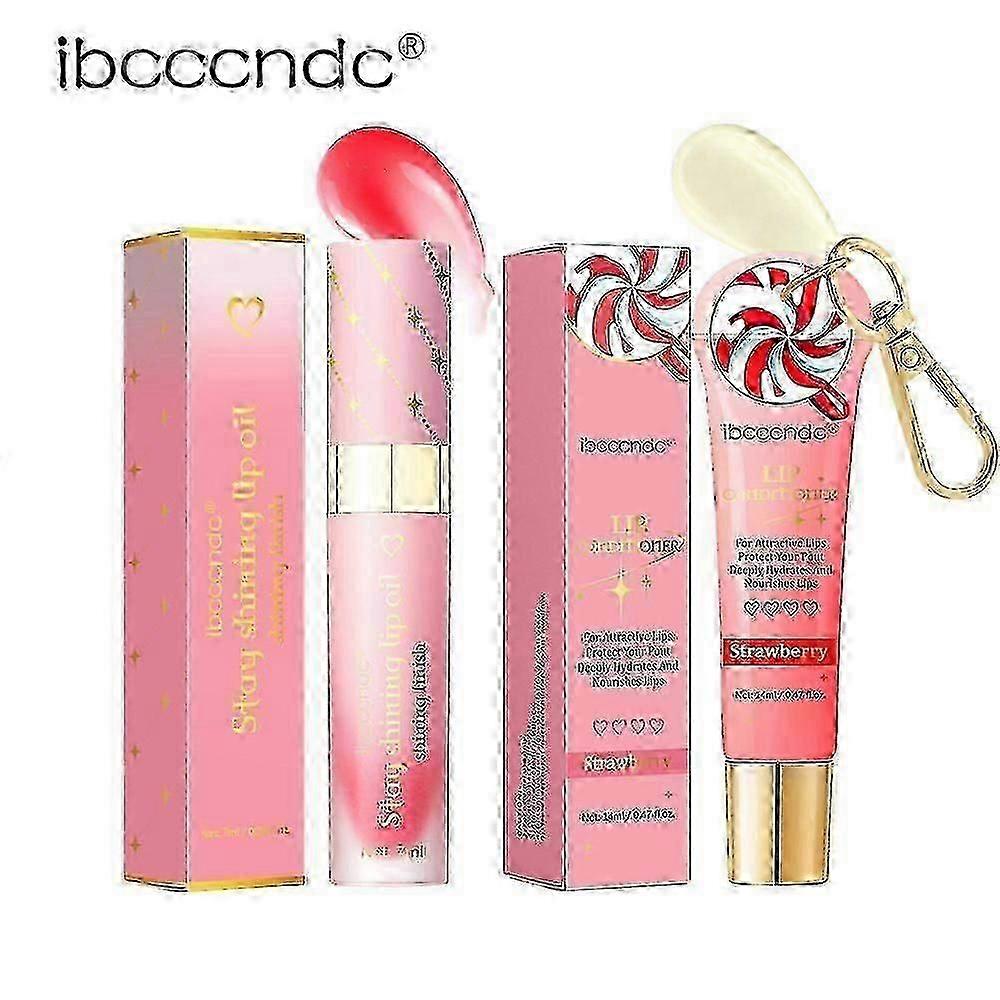 Lip Conditioner & Lip Oil Set, Moisturizing Natural Lip Care Set, Lip Gloss Balm For Dry and Chapped Lips, Gifts For Teenage Girls (Honey Peach)