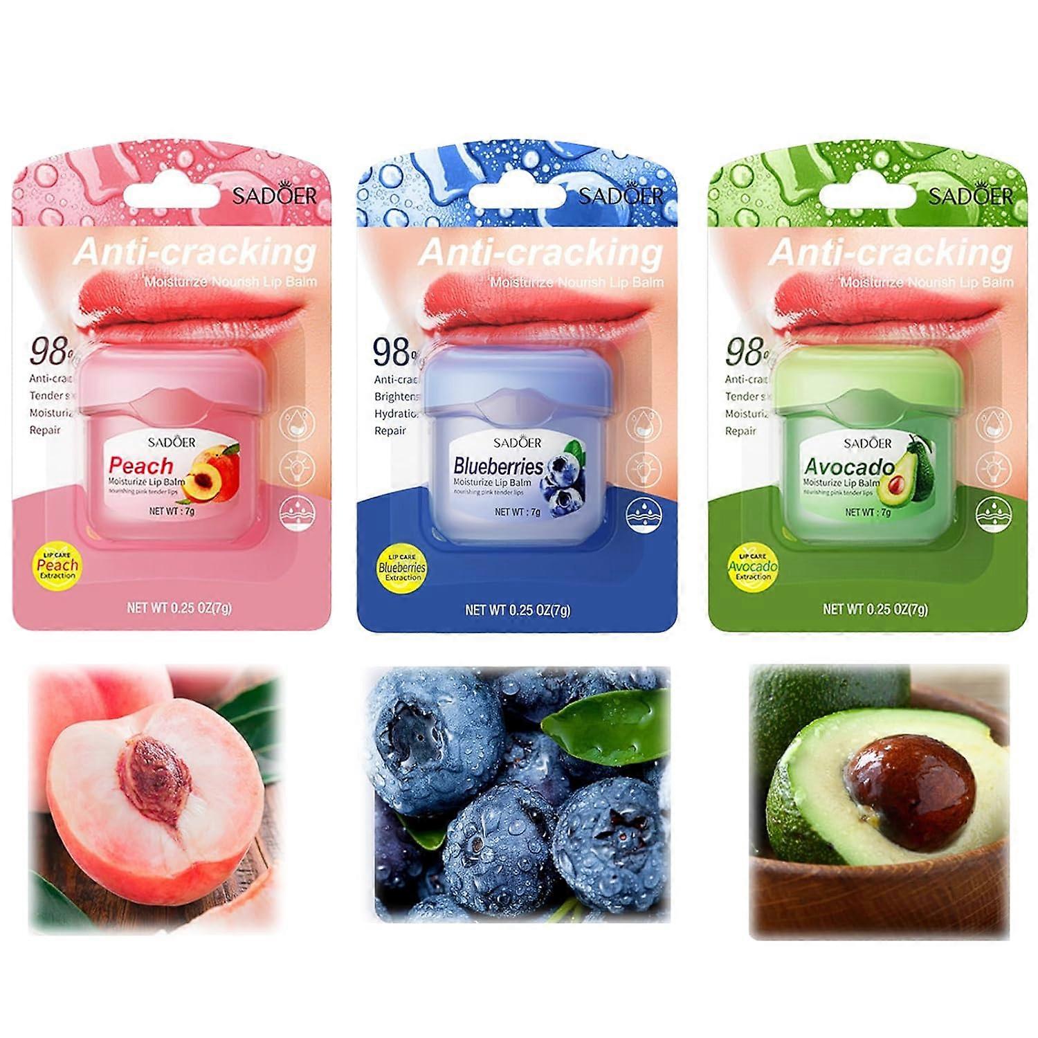 Lip Blam, Lip Butter Sleeping Mask Set Moisturizing and Preventing Dryness, Lip Oil for Dry Lips and Chapped Lips, Include Avocados & Peaches & Bluebe