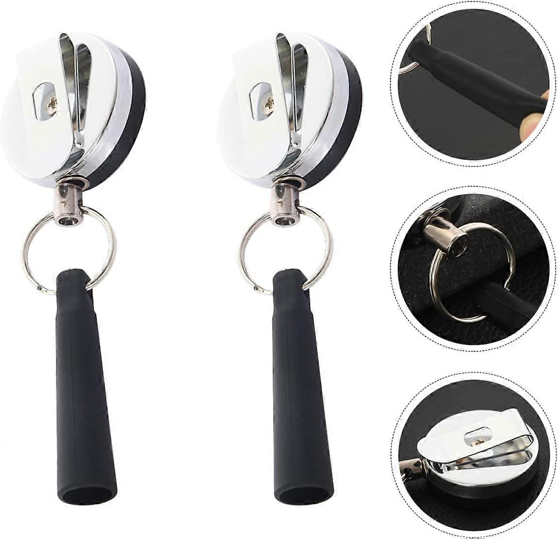 Retractable Keychain Badge Retractable Key Ring Keychain (Silver) (2pcs)