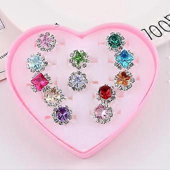 リトルガール調整可能なラインストーン宝石リングボックス内の子供子供ジュエリーリングハートシェイプディスプレイケースセット