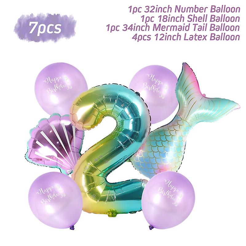 Little Mermaid Birthday Party Decorations Mermaid Balloons Foil Number Balloon Girls 1 2 3 Year Kids Birthday Party Supplies