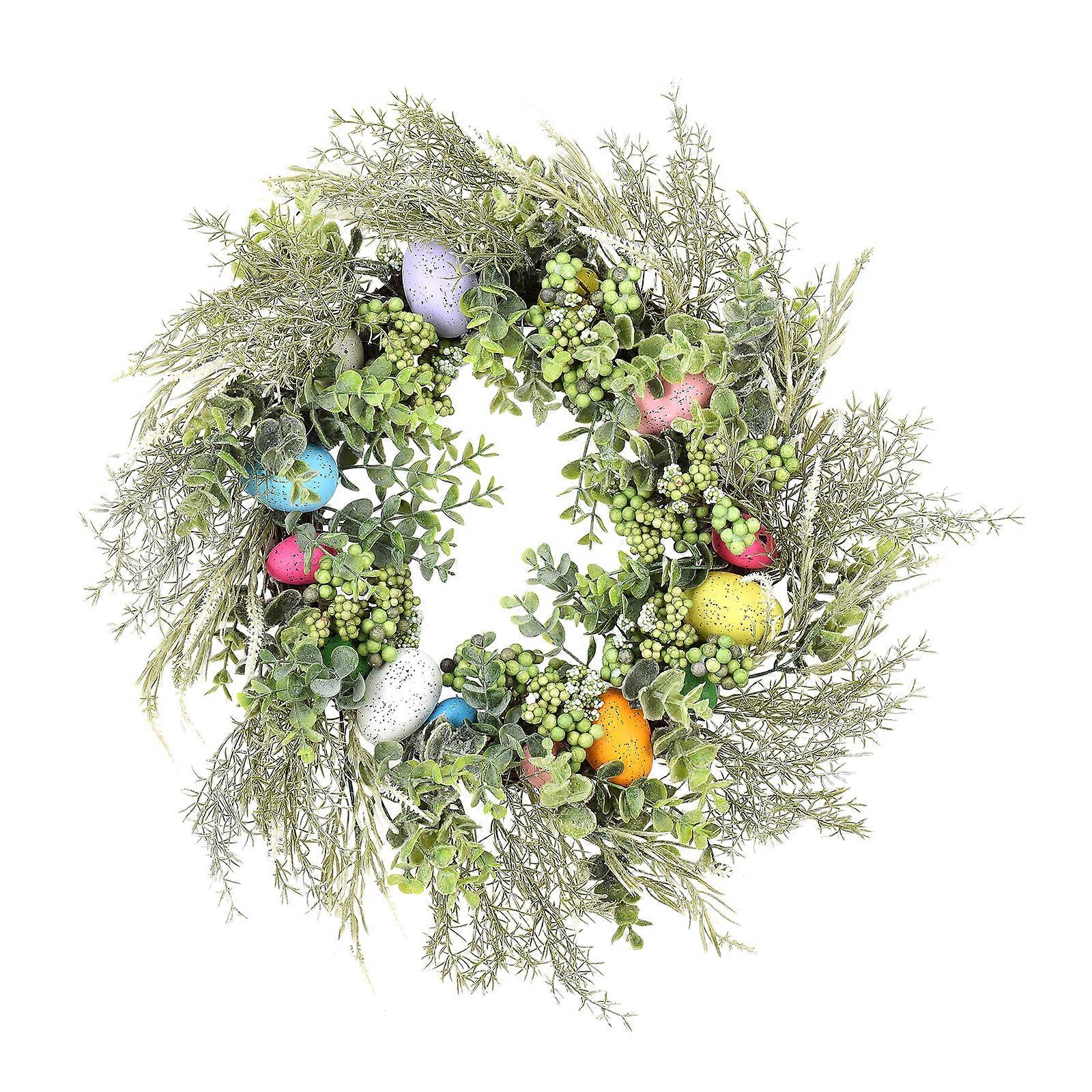 Linen Easter Wreath with Artificial Foam Eggs and Flowers