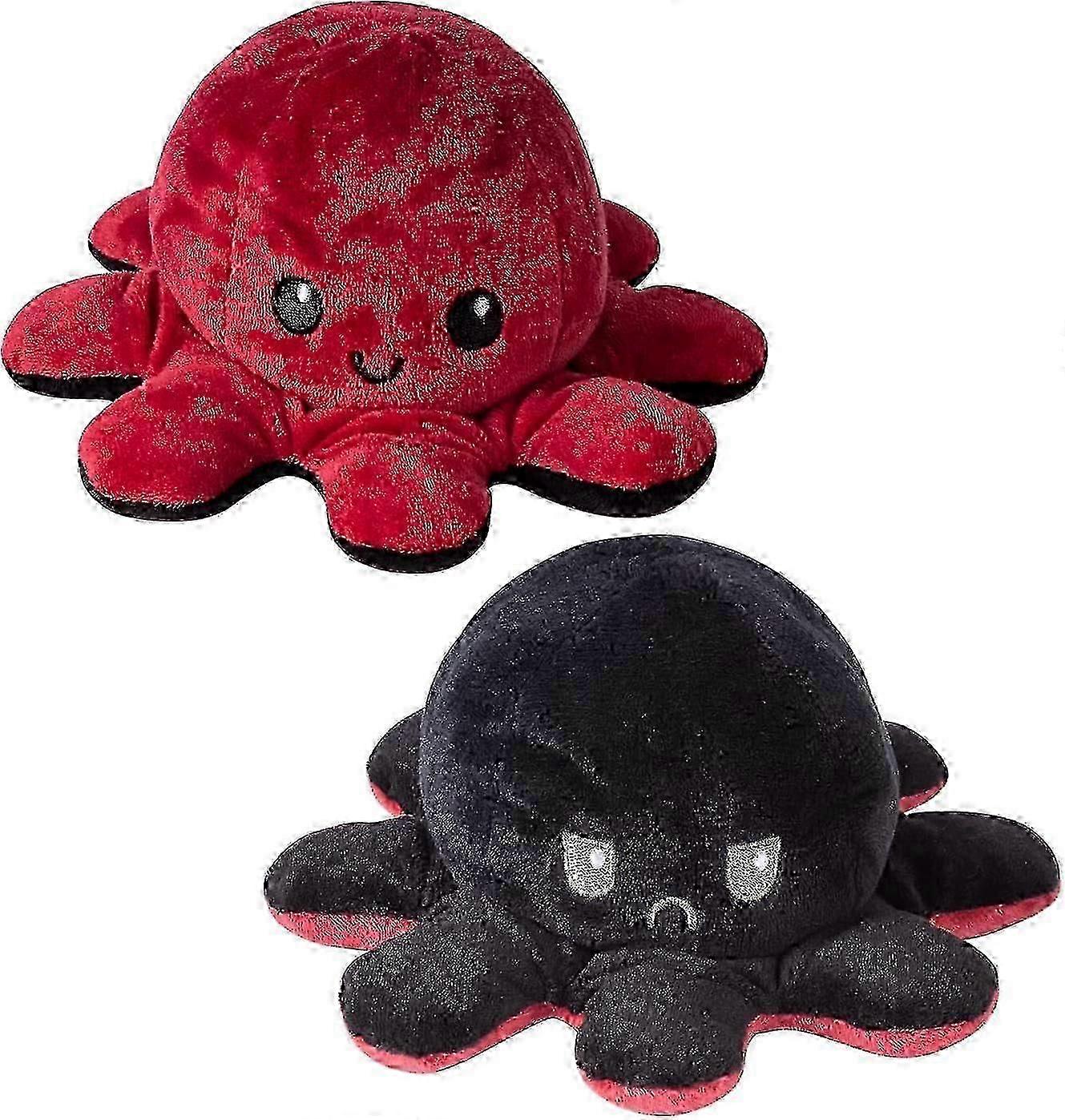 Reversible Octopus Plush Toy,octopus Stuffed Animal, Soft Plush Gift For Kids, Girls, Family, Friends (20cm - Red Black)