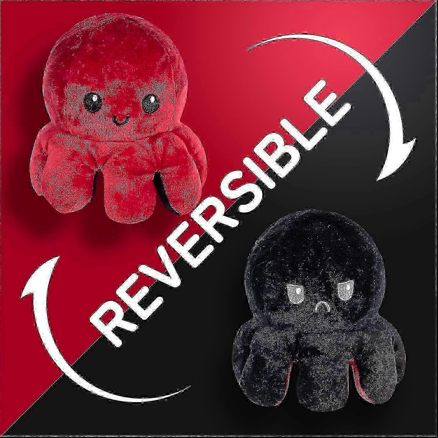 Reversible Octopus Plush Toy,octopus Stuffed Animal, Soft Plush Gift For Kids, Girls, Family, Friends (20cm - Red Black)