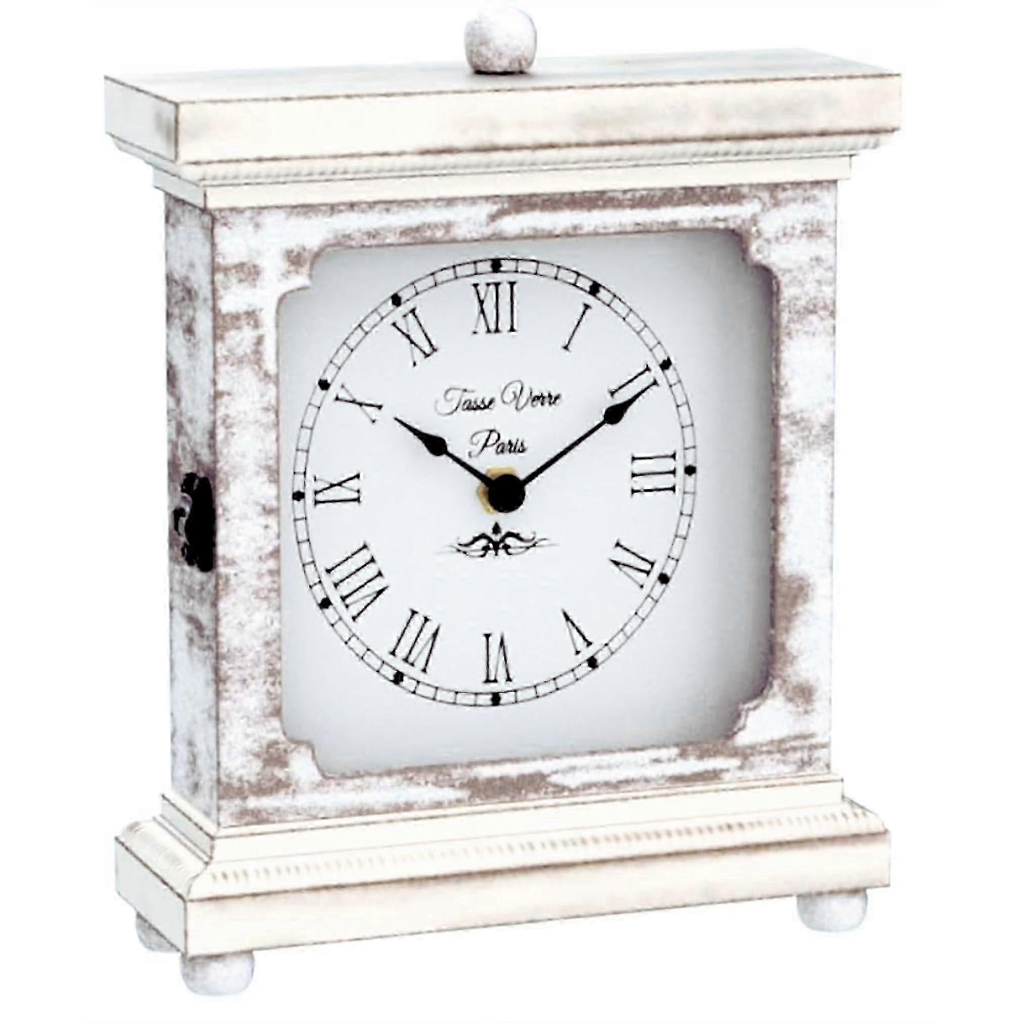 Silent Desk Clock for Living Room, Office, or Desk - 9" X 7", Distressed White Washed Wood, Battery Operated.