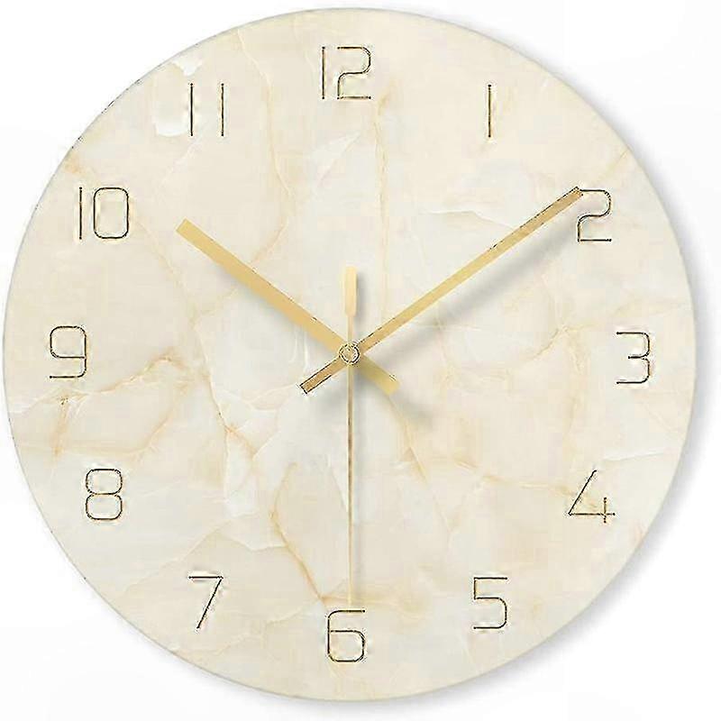 Decorative 12-Inch Glass Wall Clock with Marble Design for Living Room, Kitchen, Office, Bedroom