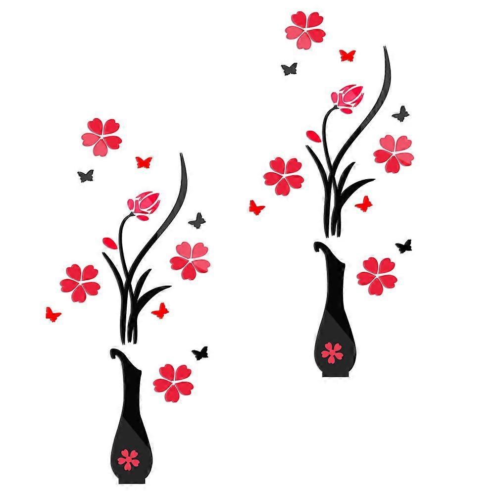 Flower Shape Wall Decal Home Decoration for Living Room and Office Red 80x40cm Acrylic Removable Non-fading 2Pcs