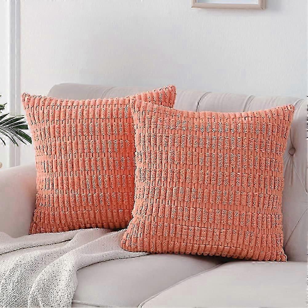 2 Packs Coral Decorative Throw Pillow Covers 18x18 Inch For Living Room Couch Bed Sofa, Soft Corduroy Square Cushion Case 45x45 Cm, Rustic Modern Farm
