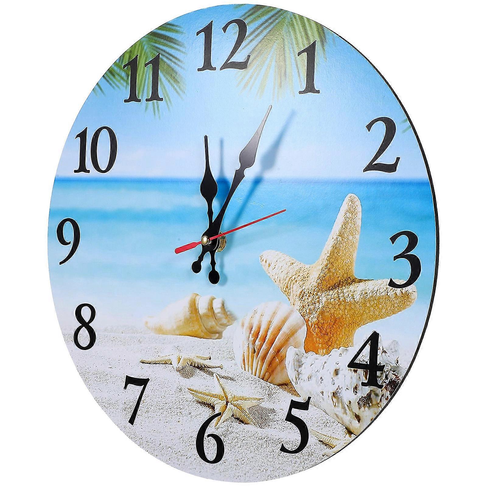 This is a home wall-mounted clock made of high grade material. It has a reasonable design and practical functions. It can easily provide you with accurate time and decorate your living space, adding a modern sense to it. It is made of excellent craftsmanship, safe and , and easy to install. You deserve have. Features -Material: Density board. -Power supply: One AA battery (Not included). -Low noise design will not disturb you when you are sleeping, it is convenient for you to check time. -Creative and chic beach scenery look design, our product is more suitable for your living room and bedroom decoration. -Wild range of application. A nice decor addition to your household, office, store, etc. -It has a wide range of applications, whether it is used by yourself or used as a present is very good. -The workmanship of this product is perfect, and you will have a good experience in using it. Package list: 1 x wall clock