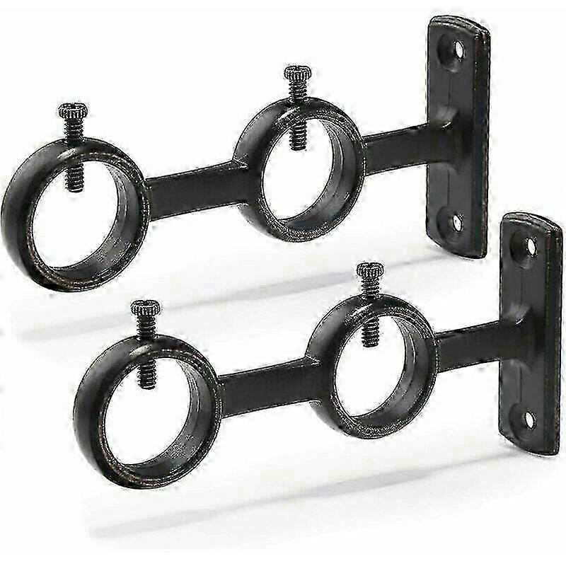 Set of 2 curtain rod brackets double hooks for living room curtain rod, bedroom, curtain rod (Black) (2pcs)