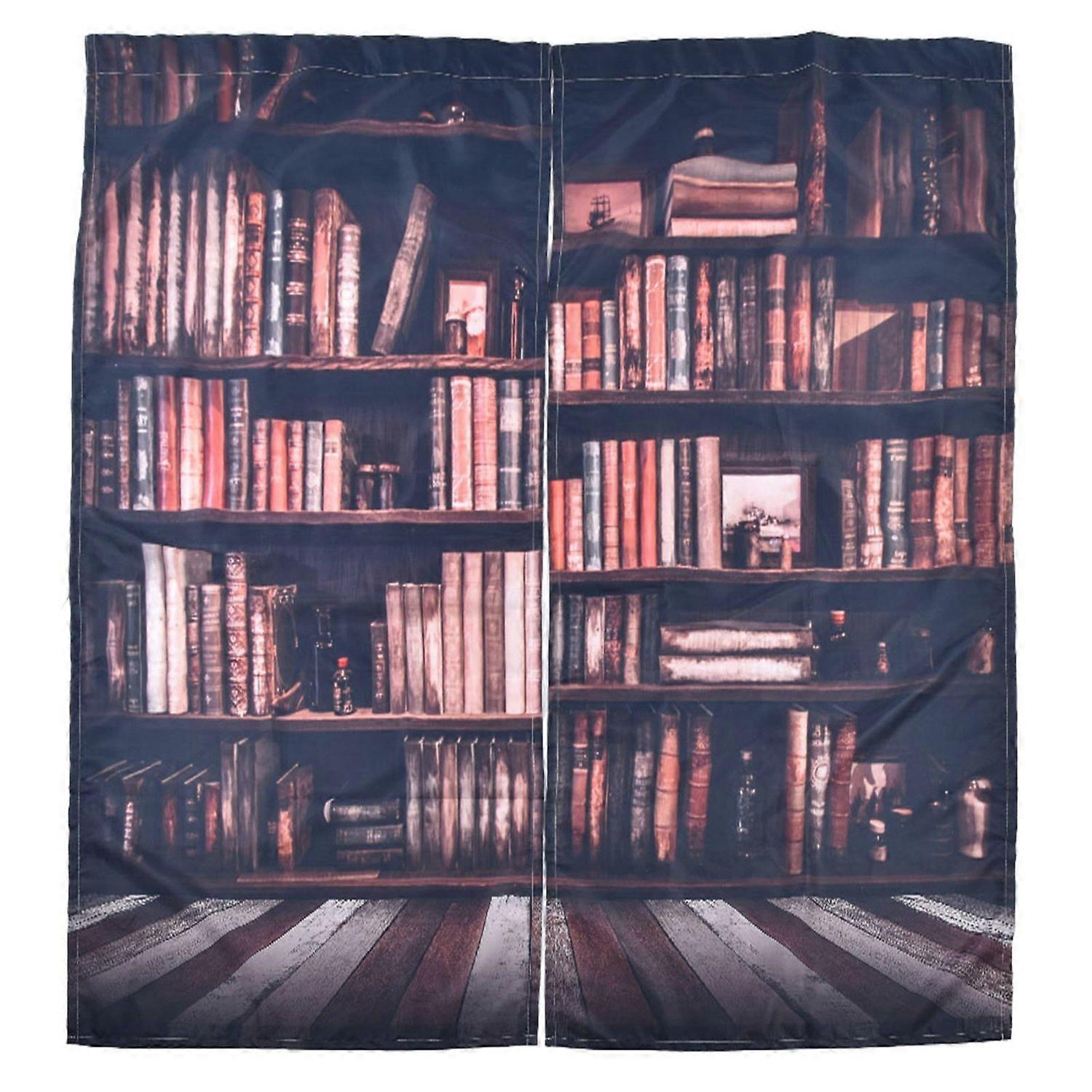 Living Room Curtains 3D Bookcase Printed Shading Curtains Bedroom Drapes (170*200cm)