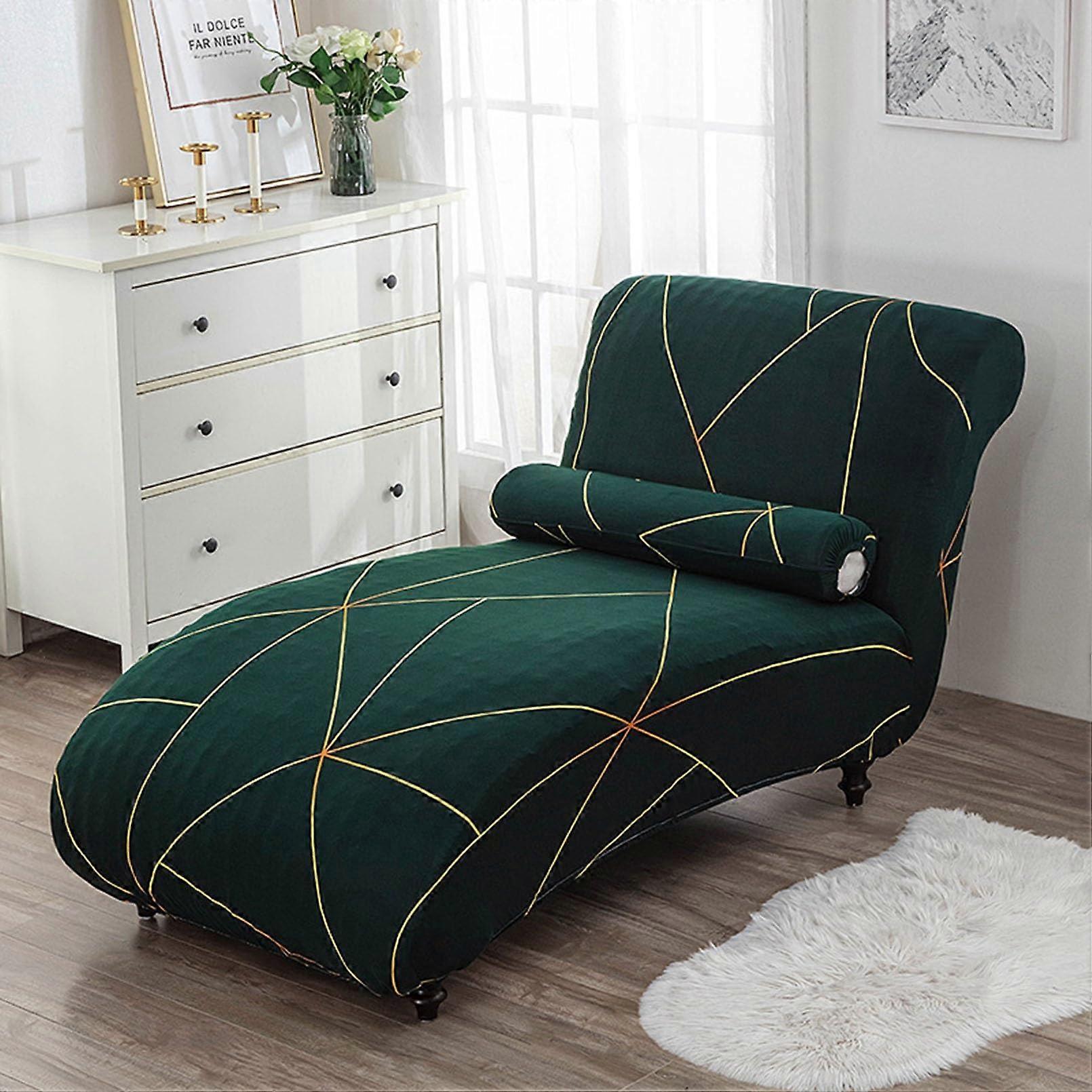 Printed Armless Chaise Lounge Slipcover Stretch Cover for Living Room Bedroom, Elastic Fabric, Fits Standard Size Chaise (J)