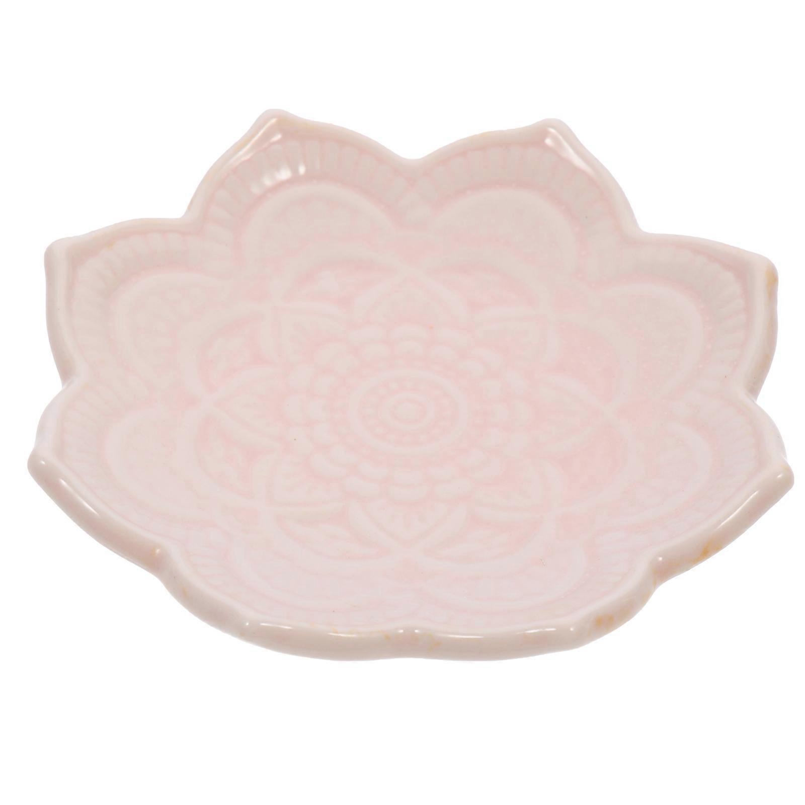 Jewelry Organizer Dish Ceramic Tray For Living Room Use Pink 10x10x2cm Small Jewelry Tray 1Pack