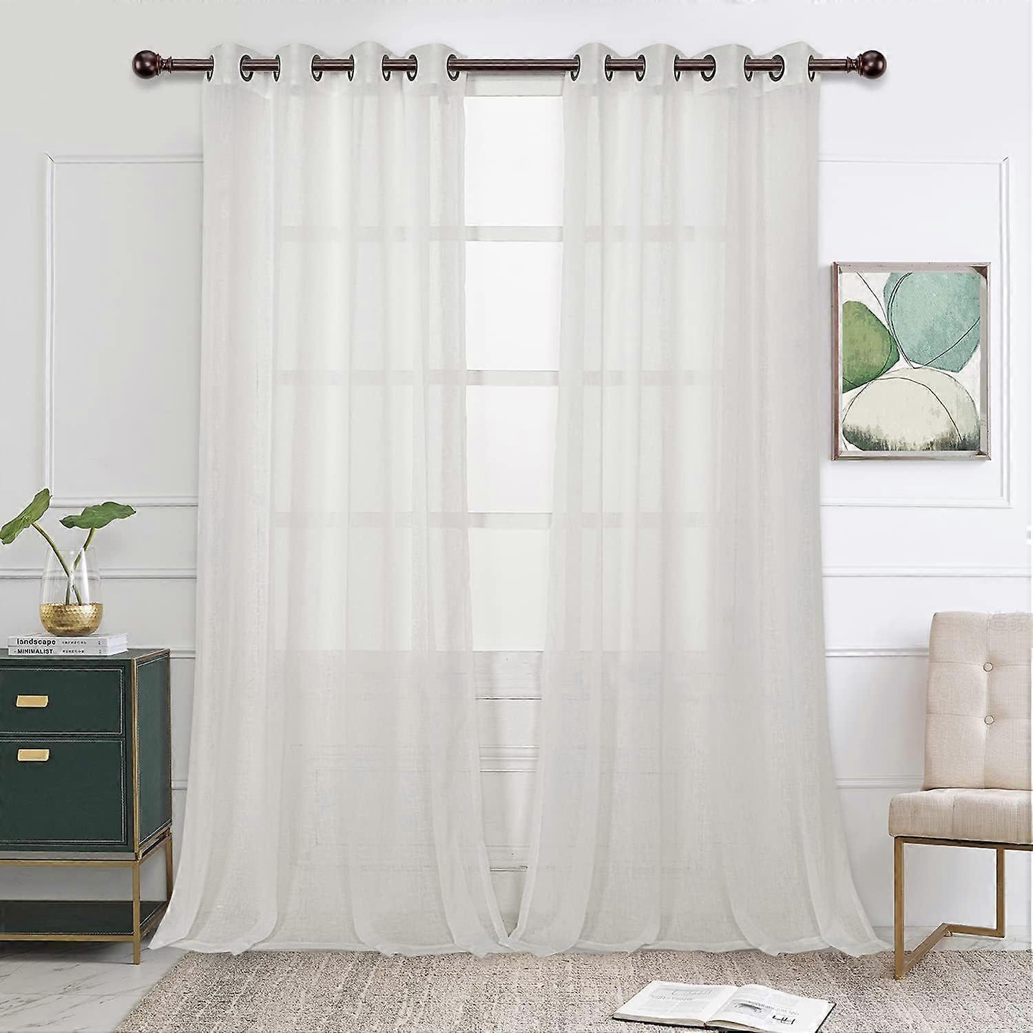 Burlap Linen Sheer Curtains for Living Room Grommet Top Sheer Drapes 108 inches
