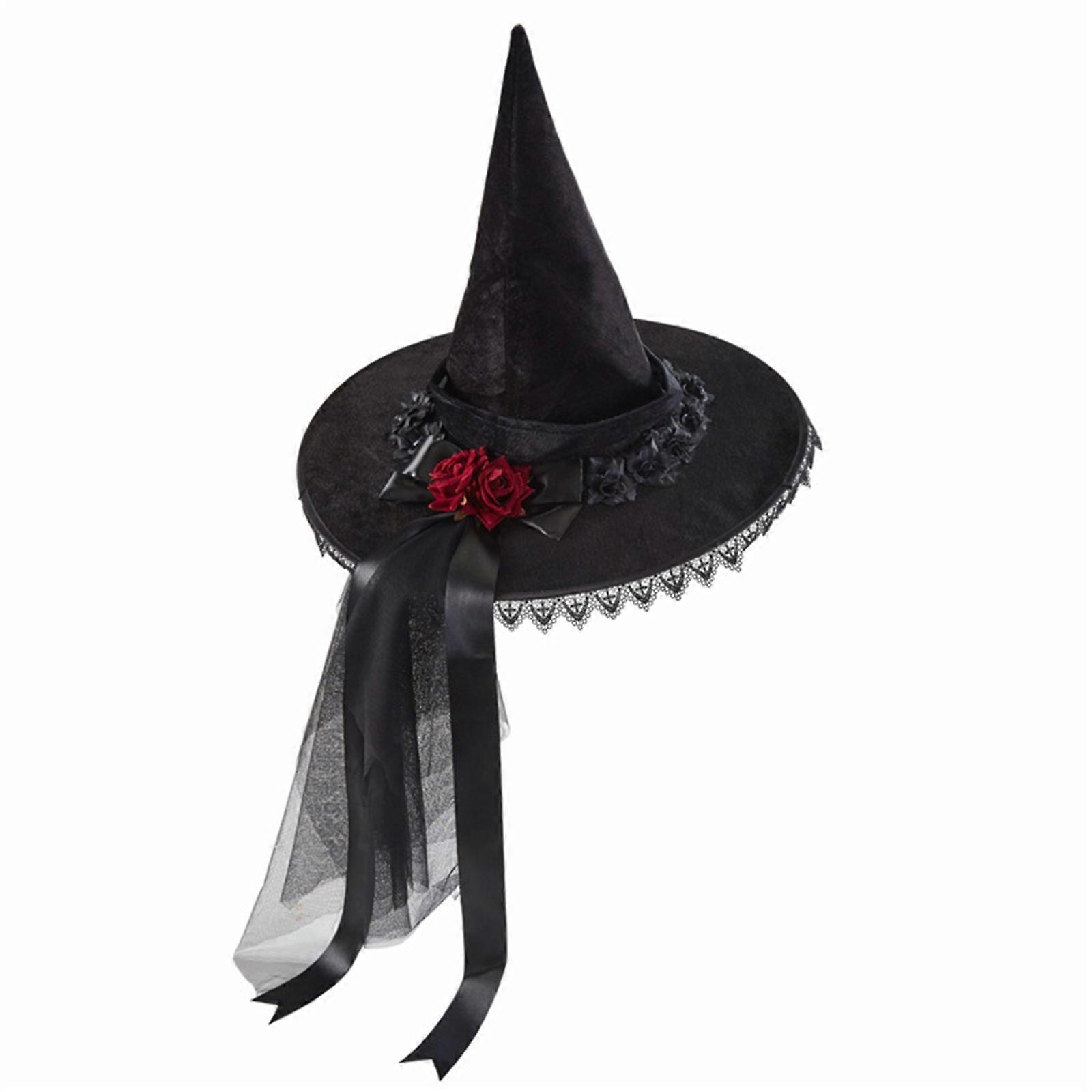 Halloween Witches Hat with Ribbon Witch Party Pointed Witch Hat Wizard Hat Witch Hat For Women Witches Halloween Cosplay Black