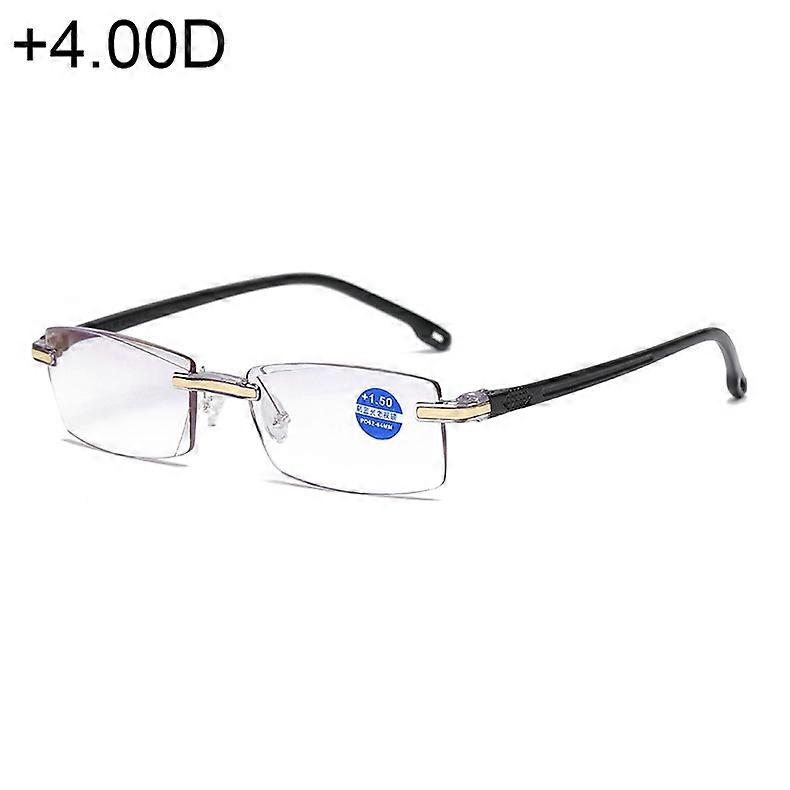 Rimless Anti Blue-ray Blue Film Lenses Presbyopic Glasses, +4.00D
