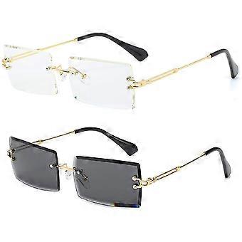 リムレス長方形サングラス女性/男性と互換性あり超軽量メタルフレームアイウェアファッションスクエアUV400メガネユニセックス-95