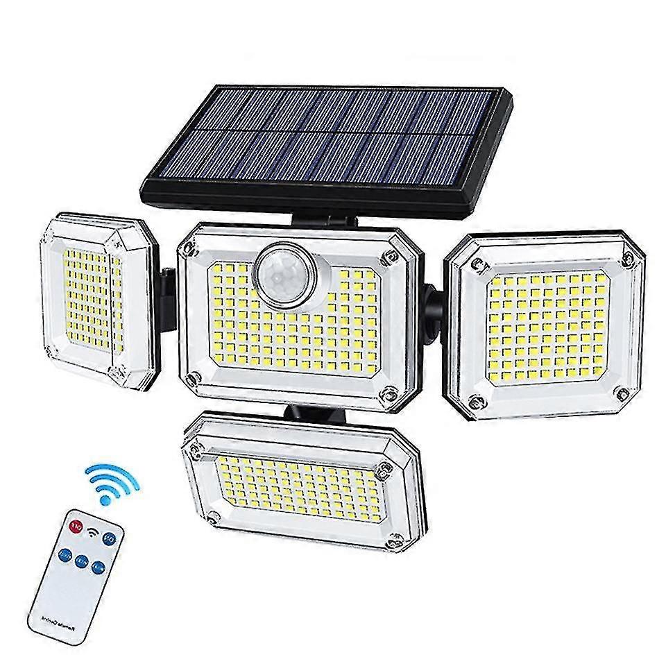 Solar Security Lights With Remote Control, Ip65 Waterproof,4 Heads Solar Flood Lights With 3 Modes For Front Door Backyard Garage Decksolar Lights Out