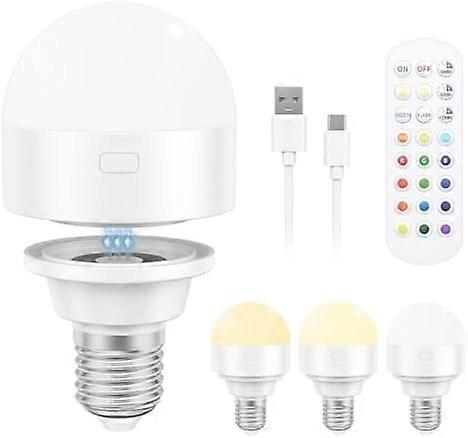★【Bulbs That Work Without Electricity】Installation simple and versatile. For non-hardwire, detachable charging and magnetic mount, our battery powered light bulb are safe for your family and suitable for numerous places, such as dining room, foyer, living room, bedroom, covered porch or patio, kitchen, entryway, hallway, stairway, and etc where needs light but don't have electricity or wiring. ★【Innovative Battery Light Bulb with Dual Recharging Options & Unlimited Battery Life】Wanme rechargeable led light bulb with larger 2200mAH battery capacity offers two convenient charging methods: 1. Charge directly with energized lamps base without removing the light bulb; 2. Remove the light bulbs from the detachable magnetic E27 base and charge it via USB-C cable. This ensures constant readiness, ideal for emergency situations and everyday use. ★【Detachable E27 Screw Base & Super Strong Suction】Rechargeable battery light bulb can great as an emergency light or backup if the power goes out, or replace wall sconces with damaged wiring with detachable E27 screw base and super strong suction function. NO damage the wall. Help to turn a corded floor lamp or table lamp into a cordless floor lamps or table lamps easily, no need for wiring or plugs. ★【Up to 15 Colors Selectable & 5 Dimmable Brightness】The color changing light bulb is designed with 12 adjustable RGB colors and 3 color temperatures in one as well as 5 dimmable brightness levels from 20-100%, perfect for accent lighting and also setting the right ambiance for any occasion. NOTE: We take our consumers' experience and voice seriously, you are welcoming to contact us if any issues occur. We will always uphold and support you. ★【Convenient Dual Remote & Press Button Control Methods】Wanme upgraded wireless light bulbs can be controlled with the press button and included remote control. ①Press button - You can manually press the power button to turn on/off, change the color. ②Remote Control - You can use it to turn on/off, pick colors, set timer and adjust brightness. Two options offers ease of use and flexibility for any lighting situation. ★【Remote Control Light Bulbs with Three Timer Settings】This puck light bulb is designed with three timer over the equipped remote control, which are 30 min, 60 mins and 120mins respectively, suitable for different timing requirements, such as bedtime lighting or other daily usage. NOTE: As a night light bulb, avoid placing the bulb on the powered base to prevent constant green light when full charged after the timer over. ★【Updated Lighting Modes - Smooth & Flash & Fade】The lighting modes are specially designed of these led night light bulbs with remote for specific usage.①Smooth Mode: softly and smoothly color changing for illumination or setting a mood.②Flash Mode: quickly color changing among the 9 RGB colors.③Fade Mode: Gradually fade out among the 9 RGB colors. With these unique lighting modes, you can live your life and party all you want.
