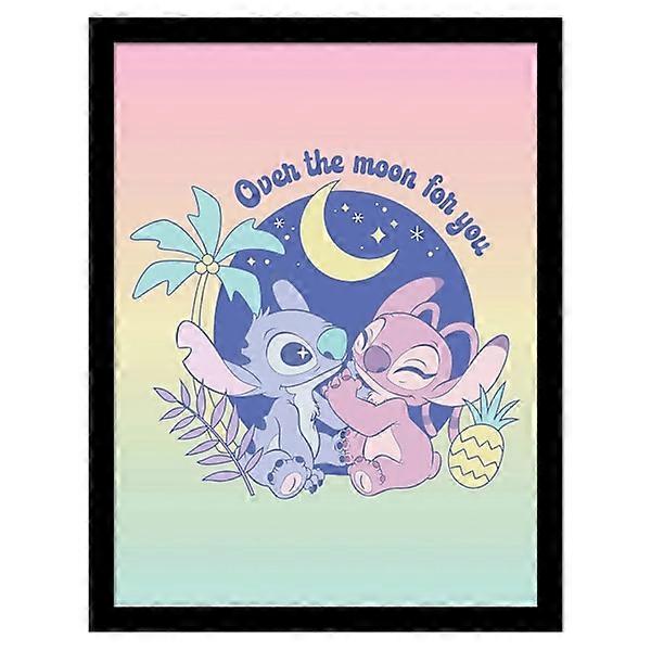 Lilo & Stitch Over The Moon Framed Poster 45cm x 35cm x 1.7cm P Pink/Blue/Yellow 45cm x 35cm x 1.7cm