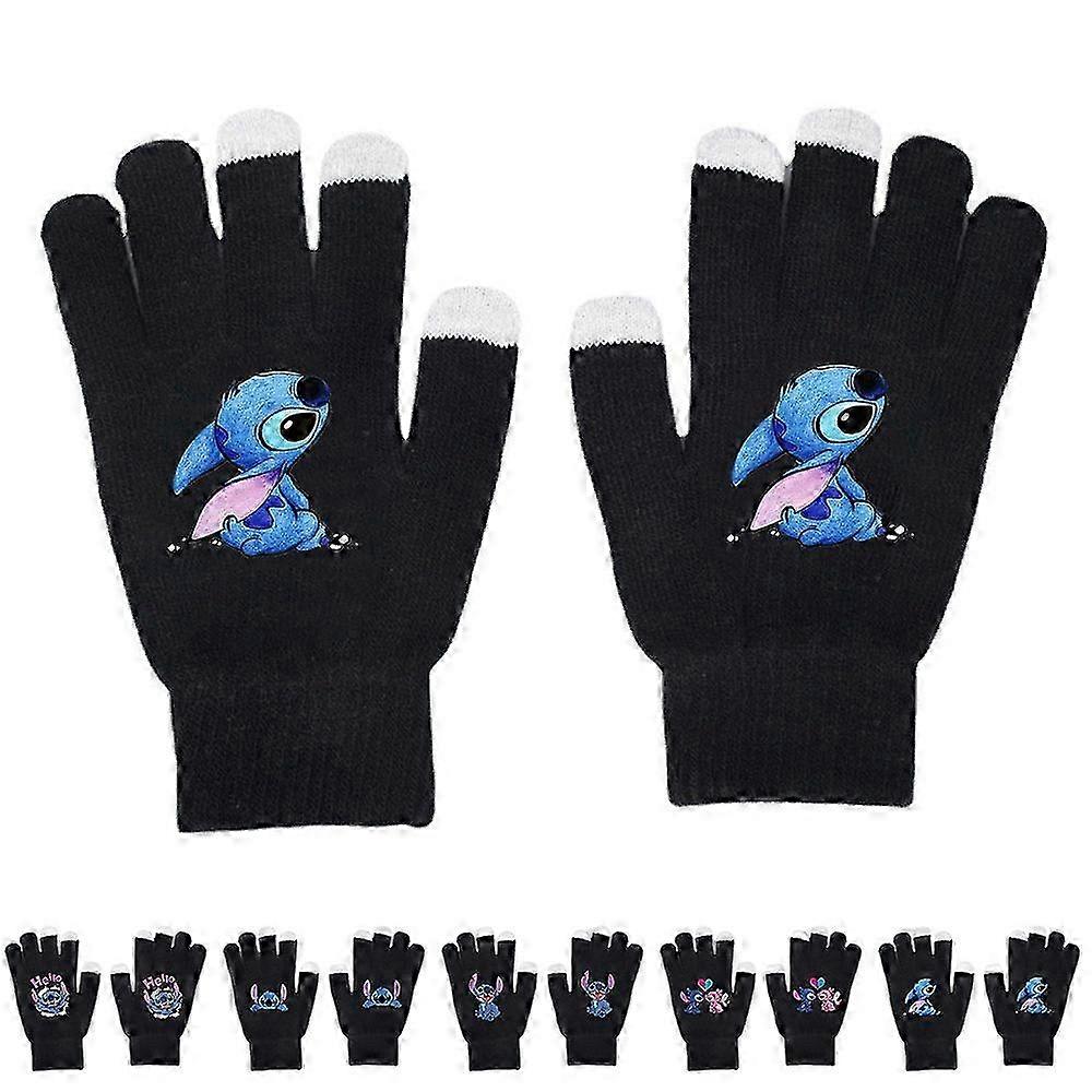 Lilo & Stitch Full Finger Gloves Winter Warm Cartoon Printing Knitted Glove Mittens Unisex Gifts
