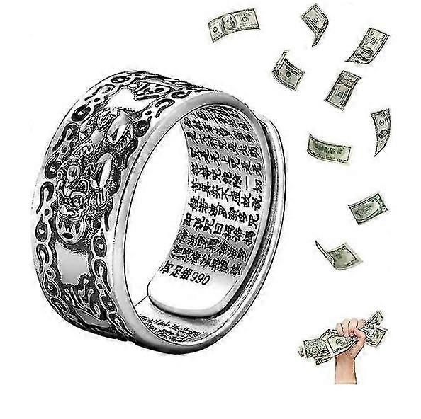 Ring ,Feng Shui Pixiu Mantra Ring for men, Buddhist Good Luck Amulet Mantra Double Protection Anillo Pixiu Ring Gi