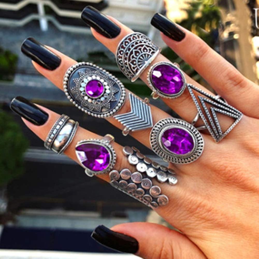 Rings Vintage Purple Rings Rings for Women Rings for Teen Girls Silver Rings Womens Rings Cute Rings Stackable Rings Set12Pcs)(Rings Size Size 2,5,6,7
