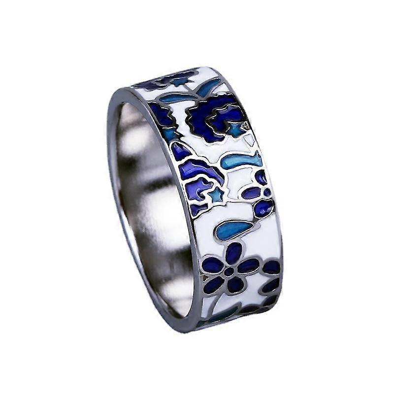 Exquisite Women s for Ring Blue Enamel Flower Ring Fashion Handmade Enamel Jewelry Wedding Bridal Ring Fashion