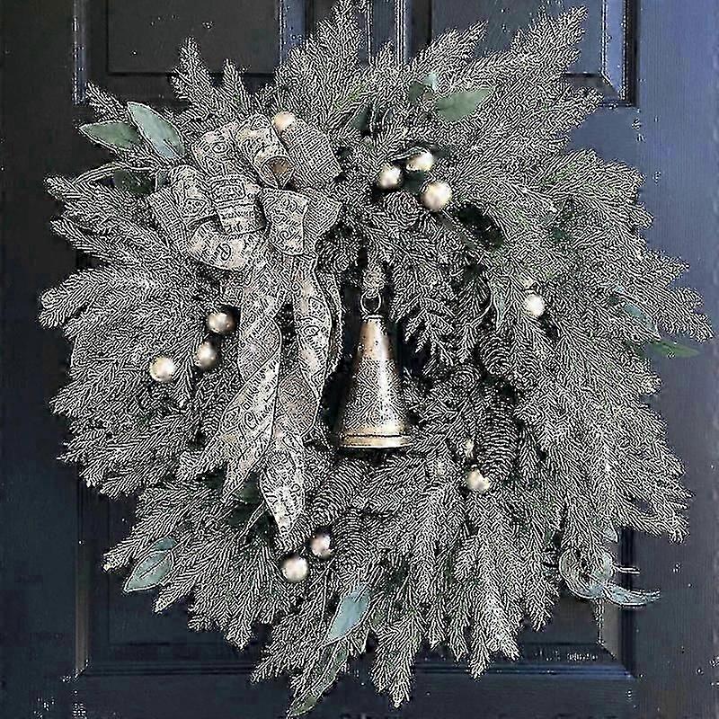 Farmhouse Christmas Wreath with Ring Bell Holiday Wreath Front Door Hanging Ornament Christmas Decoration